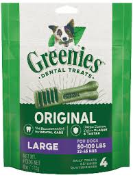 Support your dog’s oral health the natural way with Greenies™ Original Dental Chews. Made with highly digestible, natural ingredients plus vitamins, minerals, and nutrients, these vet recommended chews fight plaque and tartar build up while freshening breath. The unique chewy texture reaches down to the gumline for a deep clean your dog will love.